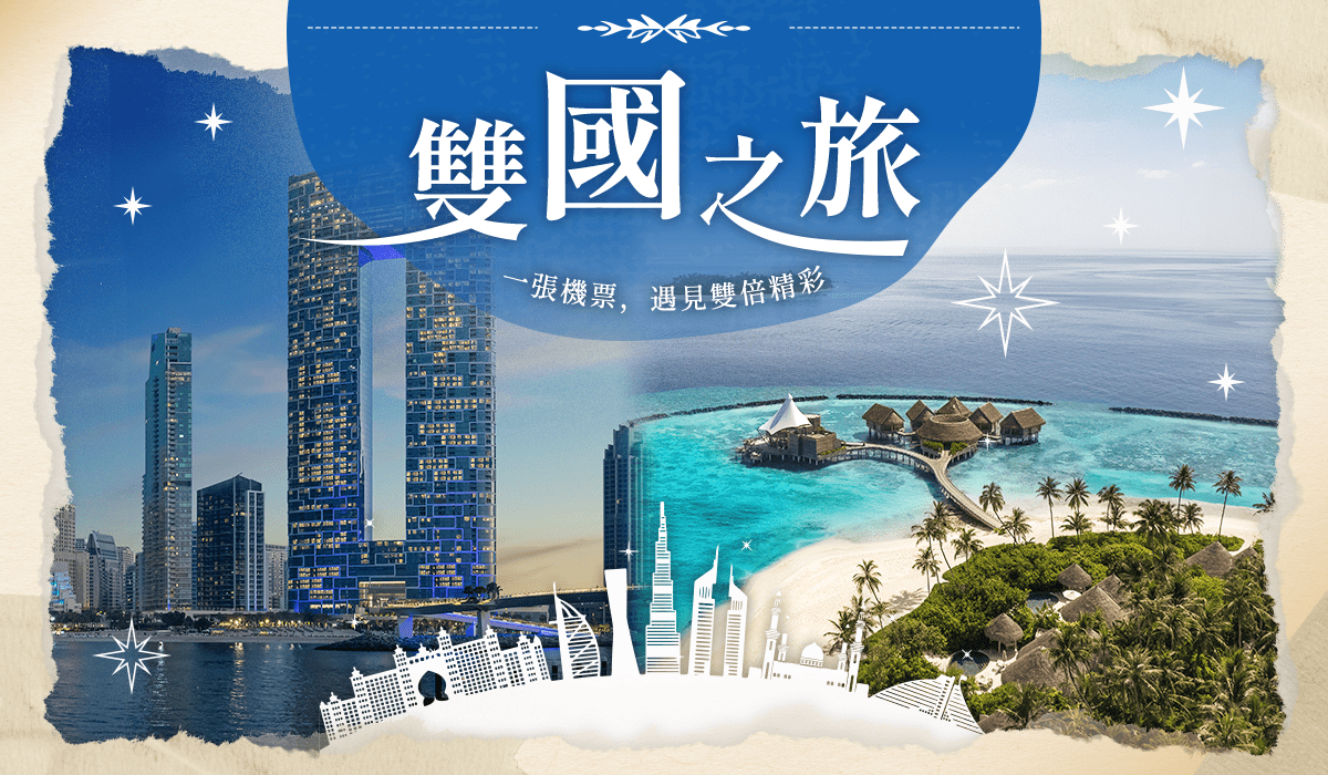馬爾地夫+杜拜是最熱門的雙國組合!先在馬爾地夫享受「一島一飯店」的海上屋度假,浮潛、出海看海豚、SPA 全面放鬆;接著轉往杜拜,走進奢華都市的世界地標,如哈里發塔、沙漠衝沙、黃金市集與杜拜商城。行程兼具海島療癒與城市刺激,一趟旅程就能體驗自然、文化與奢華購物,是蜜月與周年旅行最受歡迎的黃金組合。
