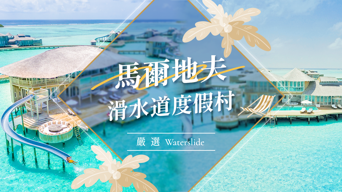 體驗網紅最愛的夢幻假期!從私人水上別墅直滑入清澈海中,大人小孩都能盡情玩樂。可選「全包式滑水道度假村」一次搞定吃住玩,或住「名人必訪度假村」享受極致奢華海島時光。