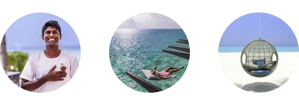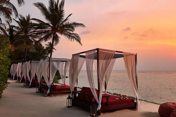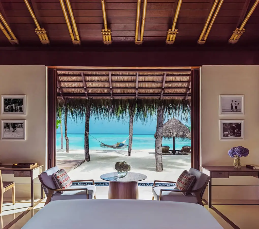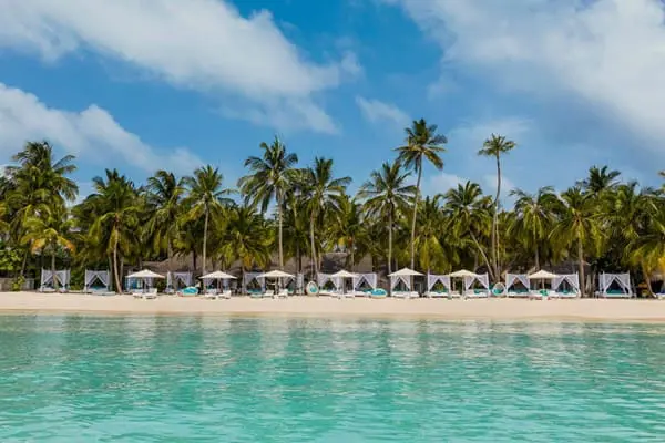 度假村海岸線長達6公里,有多達12個潔淨純白私密沙灘,並在島上種植了15,000棵棕櫚樹。別墅與別墅之間巧妙的保留彼此間的隱私,優美獨特的環境與隱密寬敞的別墅,讓各國王室、元首、好萊塢巨星及名人都是座上賓。