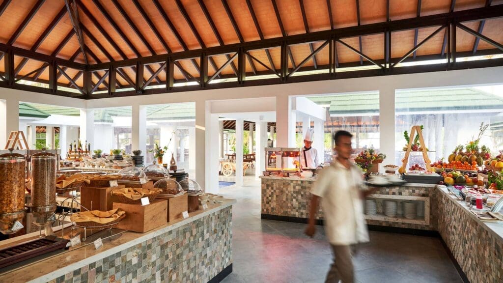 位於景致絕佳的海灘露臺上,以自助式形式提供多種國際美食及現做料理。