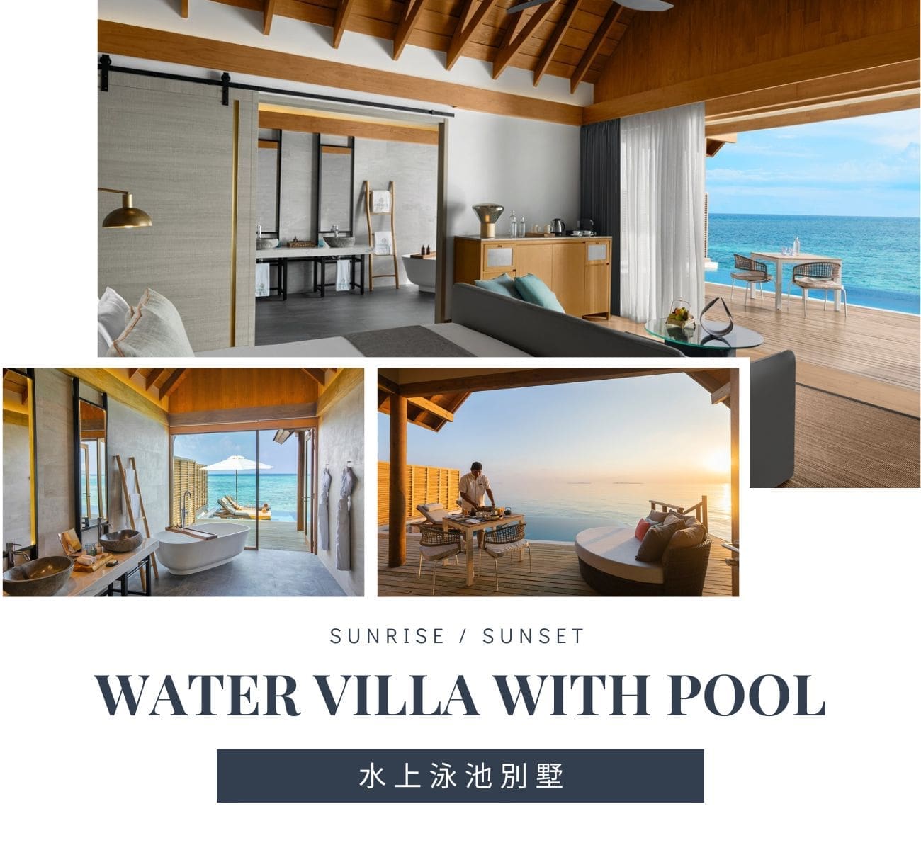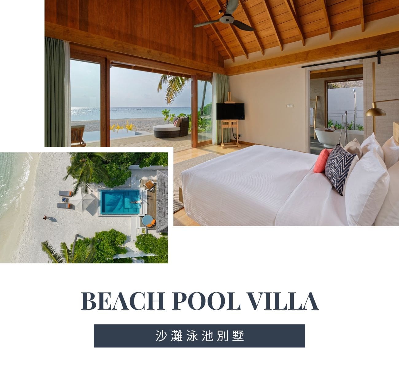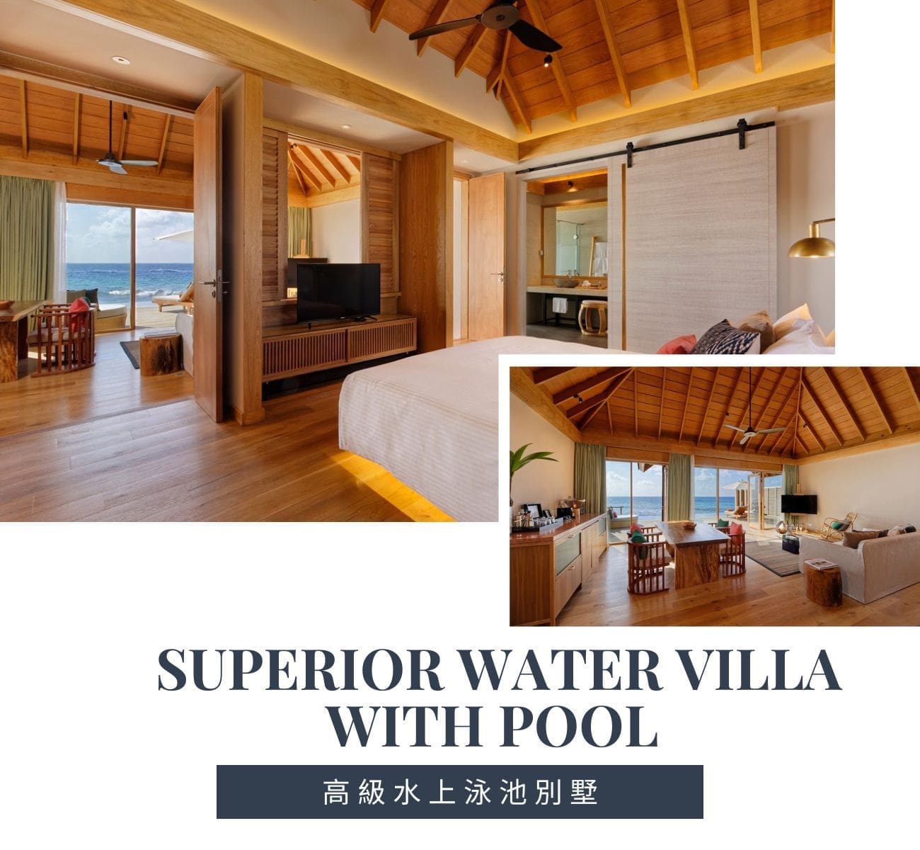 - 房型升等優惠:訂購『Beach Villal x 2N + Water Villa with Pool x 2N』升等至『Water Villa with Pool x 4N』