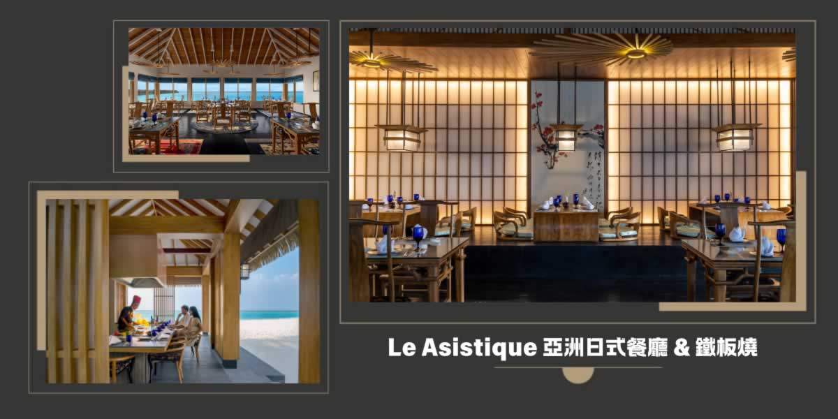 Le Asistique 亞洲餐廳 | 菜系包含日式料理、中式料理、泰式料理、刺身壽司、鐵板燒、各類炒菜、粵菜點心、泰式咖喱燉湯、越南米粉。無限量暢飲全包酒水單 |
