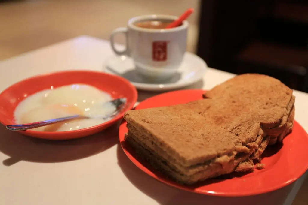 外酥內軟的咖央醬烤麵包夾上香濃厚片奶油,搭配醬油水煮蛋和味濃的本地咖啡(Kopi),是當地人最愛的早餐之一,來新加坡一定要品嚐這濃濃的新加坡風味。