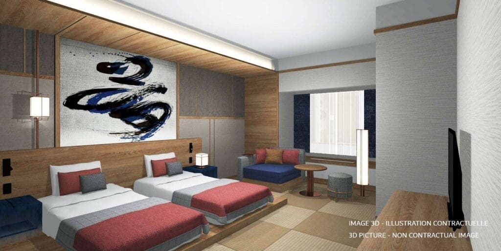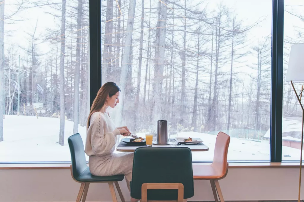 在現代的環境中享受日式榻榻米客房,欣賞山景和森林美景。在塌塌米上放鬆休閒的看本書喝茶看著窗外景色,享受白雪落下的寧靜時刻。注意事項:此房型接受12歲以上兒童預訂入住。