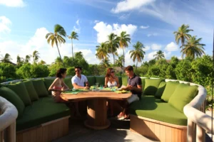 飯店自有培養的有機花園提供貴賓最鮮甜的蔬食,料理於食用前幾小時採摘。主廚與當地漁夫配合,以馬爾地夫新鮮海鮮入菜,提供您養生健康的一餐。