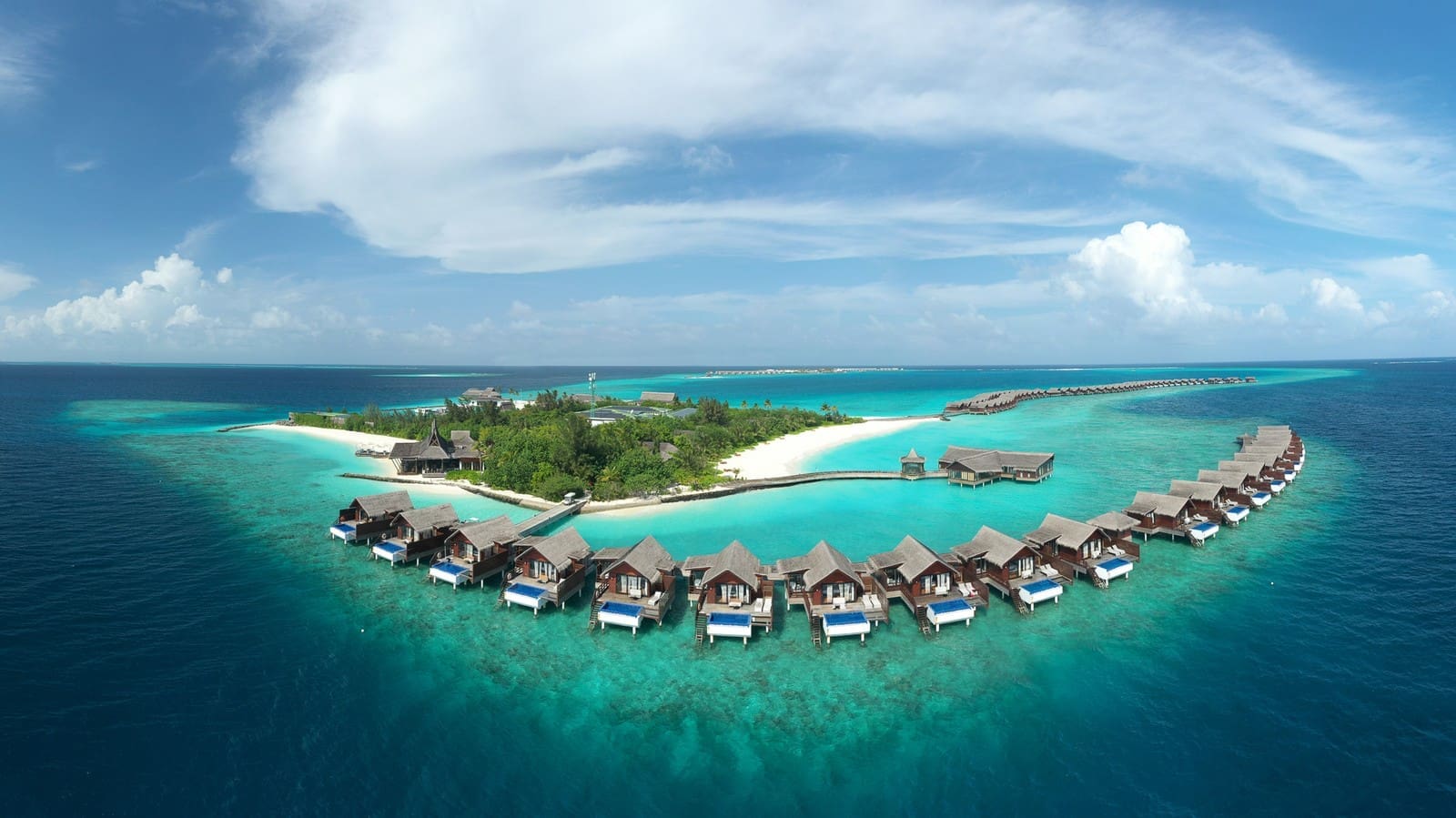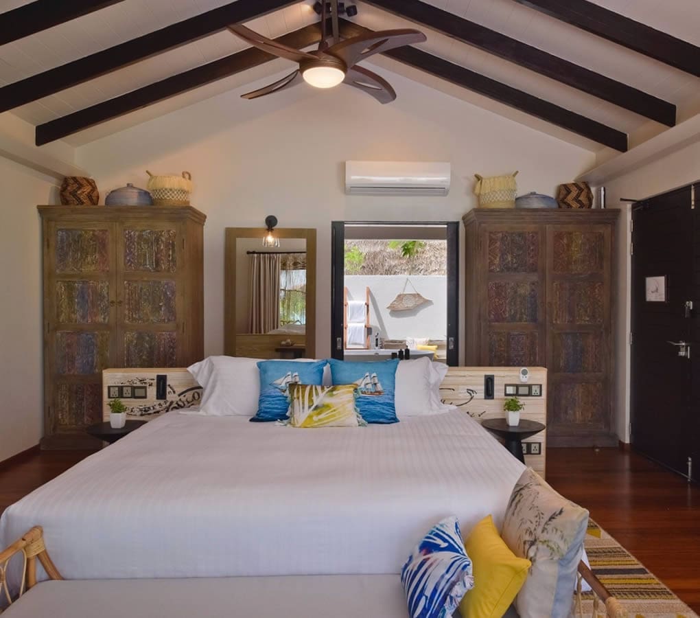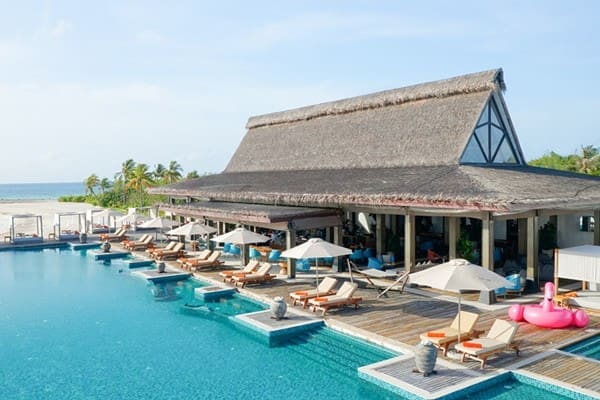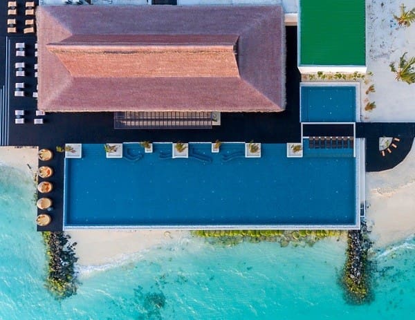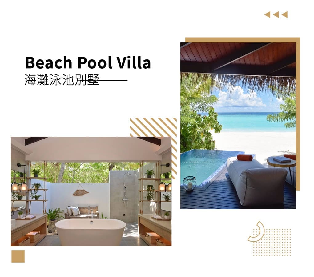 度假村由全球享譽盛名的酒店設計事務所 Hirsch Bedner Associates所操刀設計,精緻細膩的建築外觀、新潮先進的室內裝飾和棕櫚鑲邊的挑高天花板,別有一番品味格調。沿襲了馬爾地夫傳統木器和藤藝的美感,精妙結合現代元素,凸顯質樸魅力風情與靜謐幽雅的氛圍。中性色調、自然美感和寬敞的空間,將海濱和水上別墅、餐廳以及休閒空間與寧靜悠然的別致環境巧妙結合。