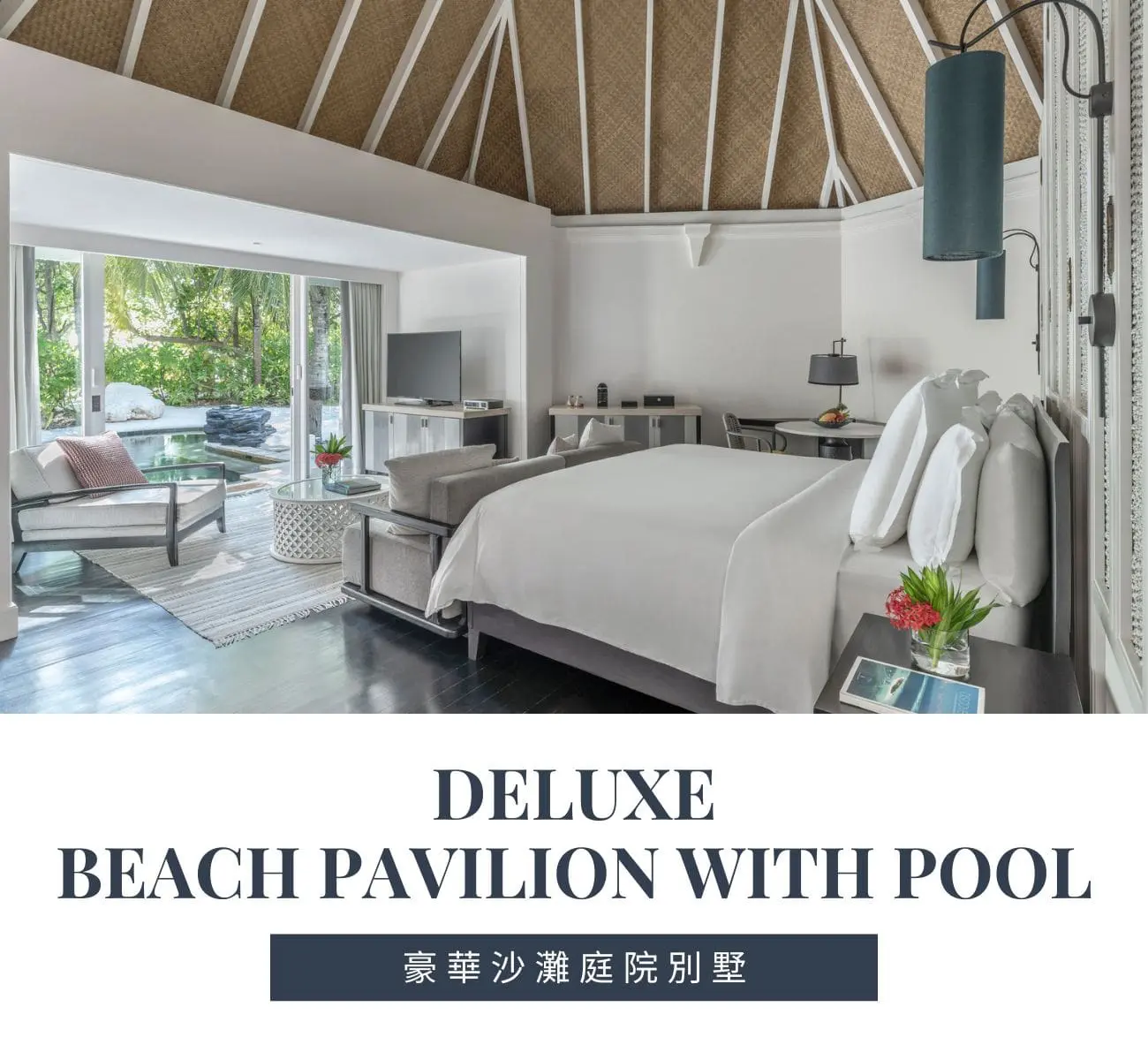 | Deluxe Beach Pavilion with Pool 豪華沙灘泳池閣 | 19間 | 室內 46平方公尺/室外 65 平方公尺 |