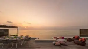 入住全新水上泳池別墅,擁有長達8米的無邊際泳池,直接連結室內沙發床窗台,隨時一躍即享絕美海景!寬敞露臺備有舒適沙發和網床,無論是日光浴還是星空下放鬆,讓您隨時擁抱度假愜意。這裡完美結合奢華與隱私,是蜜月、家族旅遊或放鬆身心的最佳選擇!