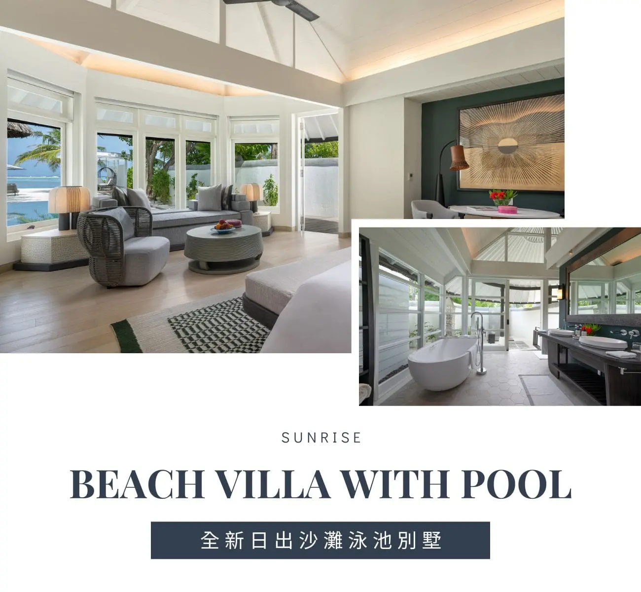 | Sunrise/ Sunset Beach Villa with Pool 日出/日落沙灘泳池別墅 | 5間 | 室內 70 平方公尺/室外 285 平方公尺 |