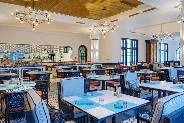 戶外享有私人海灘和大型游泳池,並配有DJ和各種娛樂設施。室內則充滿輕鬆的時尚感。菜單提供各國經典菜色,從早午晚餐點到清涼酒飲,選擇豐富多樣。