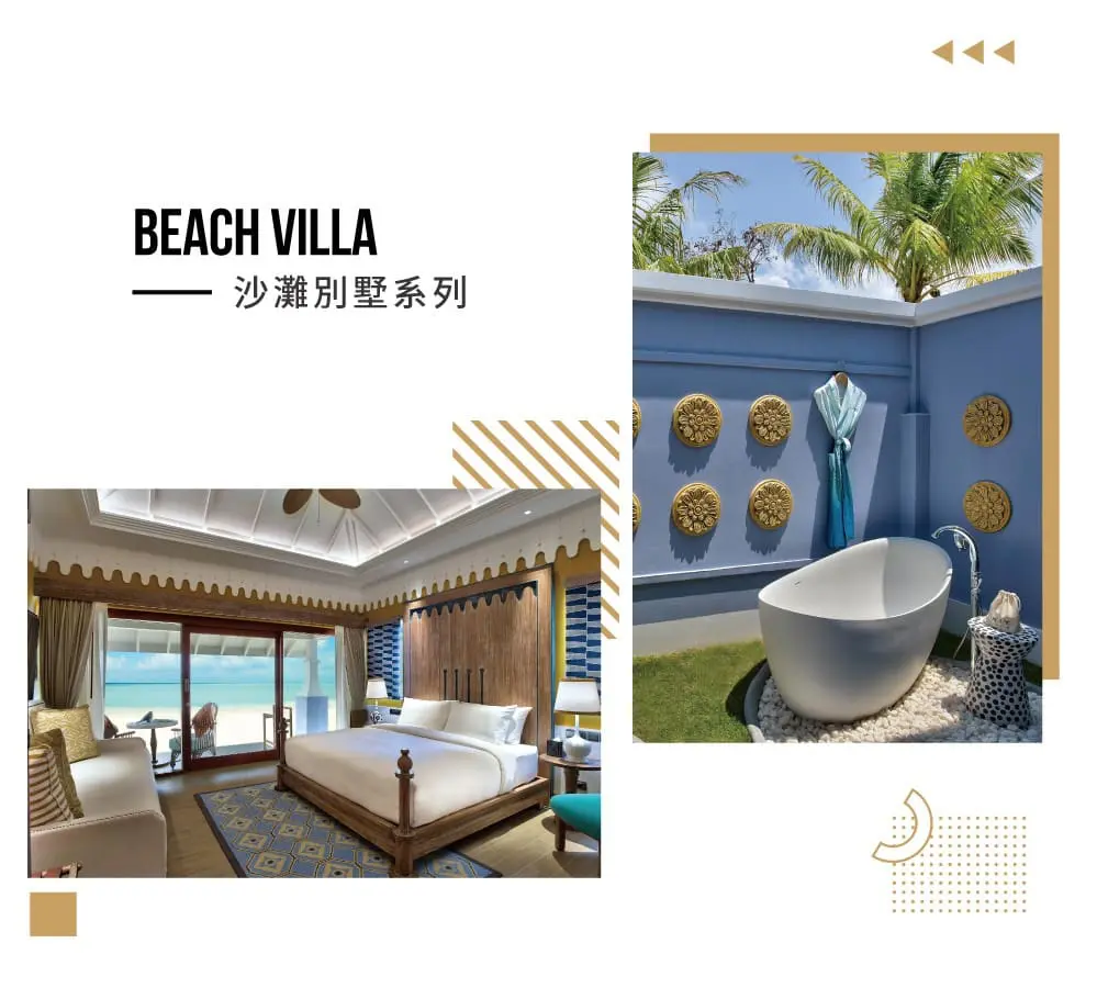 每間客房均享有美麗的海景,以充滿活力的瓷磚圖案,和自然紋理、柔和的色彩設計。您可以在Aroma LAB使用天然成分調配出專屬於你的芳香製品。在池畔地中海海鮮餐廳享用美味燒烤,或是前往泰式料理餐廳,還可以在無邊際泳池靜心欣賞無敵海景,除此之外還有獨特多元的陸、海、空活動,無論是乘坐直升機遊覽波光粼粼的馬爾地夫海域,或是探索在水面下等待的豐富海洋生物,在這裡為所有家庭、親友或是情人創造一趟有趣的熱帶假期。