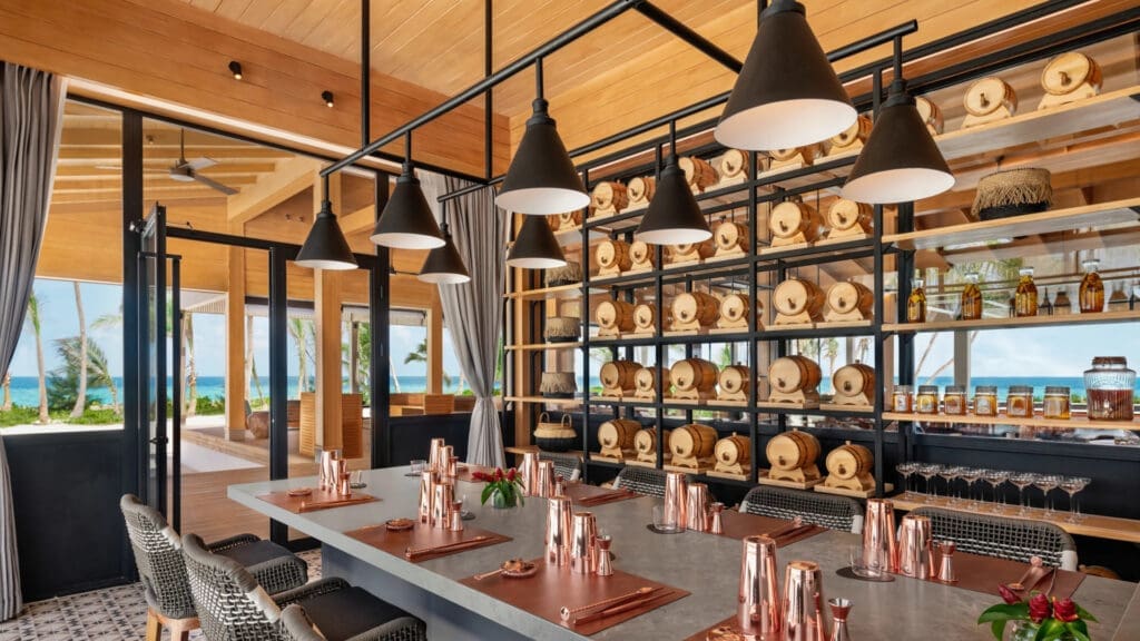 供應各種生蠔、沙拉、漢堡等各式輕食點心。其中的雞尾酒實驗室為馬爾地夫首創-專業的調酒師在此調配苦酒和康普茶等各式飲品,展現雞尾酒調酒藝術的魅力。
