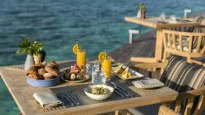 絕不能錯過的是,前往全球知名、位於姊妹島Hurawalhi的世界最大全玻璃「水下餐廳」,船程只需短短5分鐘即可到達,深入5.8公尺處的世界,全玻璃打造,將您的用餐五感體驗飆升,搭配現代料理手法烹調的美味菜餚,賓客可一邊品嚐美食、啜飲美酒,還能欣賞五彩絢爛的珊瑚礁美景與海底奇幻生物們,創造永生難忘的用餐回憶。