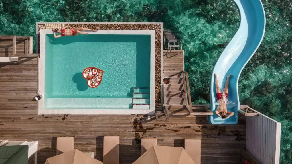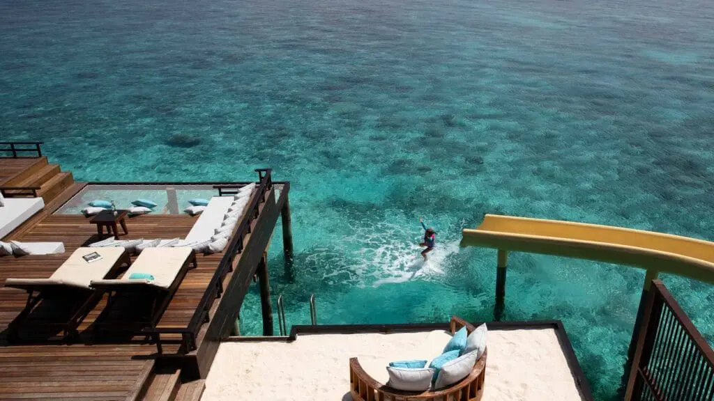水上泳池別墅已經是基本款,近年來最夯的就是要擁有海上滑水道,恣意享受衝進印度洋的滑水道,還有什麼比的上整個海洋都是你的海上樂園來的痛快!