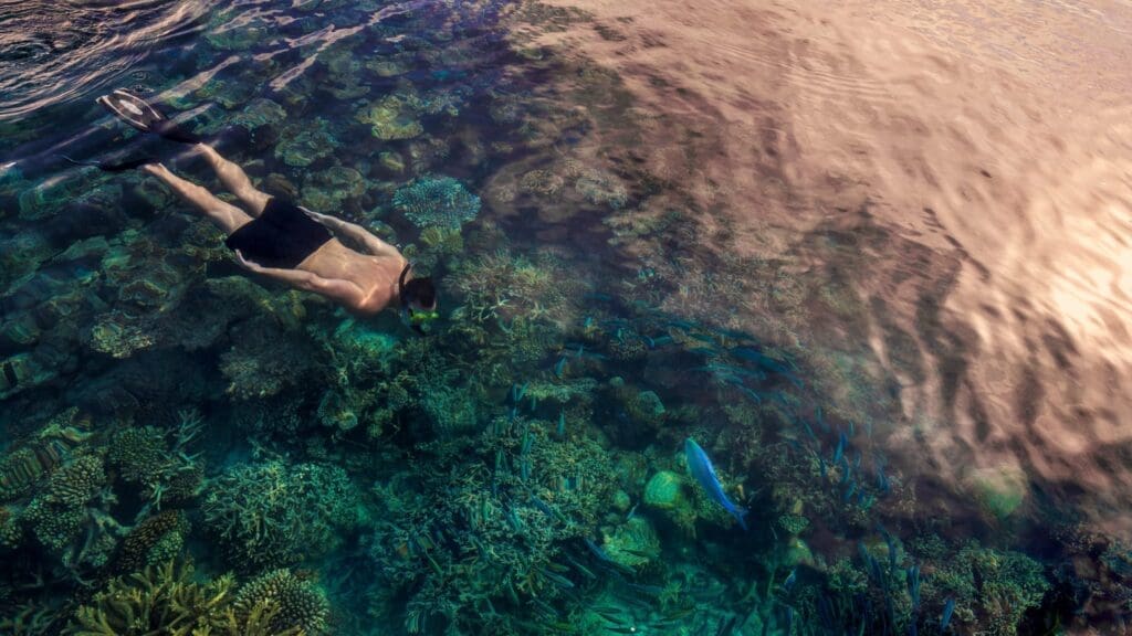馬爾地夫洲際度假村鄰近國際生態保育區,擁有絕佳的自然生態環境,令人驚艷連連的海底生態環境與豐富的生態資源圍繞著洲際度假村,在此擁有良好的浮潛環境,想要體驗好的浮潛環境不一定需要參加出海活動,隨時躍下海面,您都能體驗島嶼周遭絕佳的自然生態,洲際更打造了潟湖區,提供不會游泳的旅客有個安全且優質的浮潛體驗,讓旅客與海龜、魟魚共游不再只能是夢想。