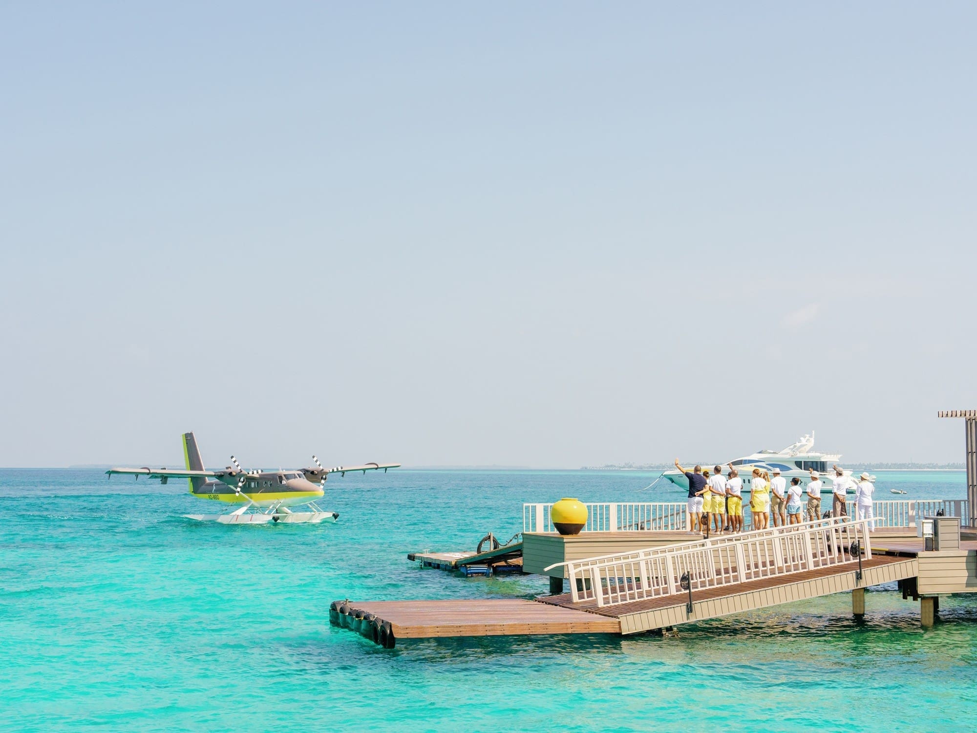 愉快的假期從水機上欣賞沿途一望無際的印度洋美景開始!除可搭乘一般水上飛機外,還可以指定莊園的「私人水上飛機」前往,私人飛機內部特別設計的手工縫製灰色皮椅有如奶油般柔滑的手感,也是馬爾地夫少數擁有自己候機室的飯店之一,當人家都是坐巴士,他們提供的是賓士S Class,提供精品等級的待遇。