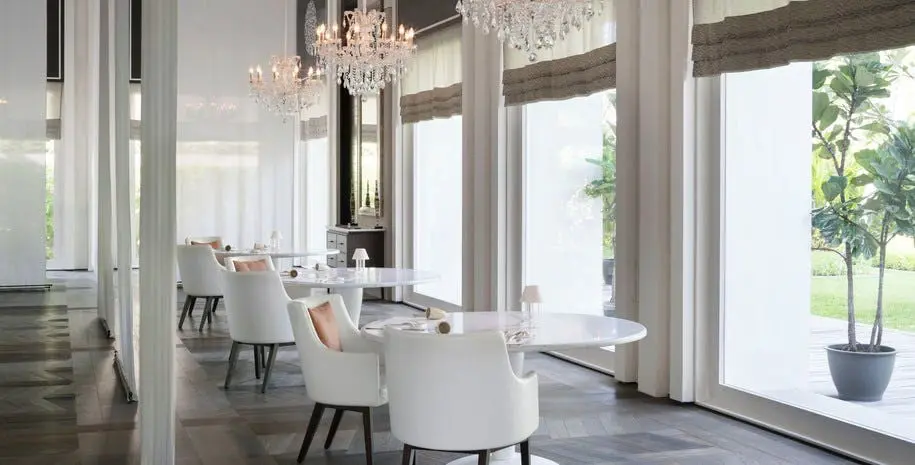 白馬莊園中最具標誌性設計:精緻料理餐廳「Le 1947」名字源于白馬酒莊最尊貴的年份酒,Cheval Blanc名釀的產地—白馬莊,是波爾多八大名酒莊之一,其1947年份的白馬酒是頂級佳釀,曾獲得「本世紀最完美作品」的讚譽。