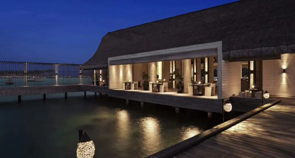 此處為法國米其林三星主廚Yannick Alléno提供了展現其精湛廚藝的最佳舞臺,通往餐廳內部的一整條朱紅色走廊,整體風格向法國料理致敬,詮釋出馬爾地夫氛圍中的精美和創意;不用到法國,在馬爾地夫,也有米其林3星級美食的頂級享受。