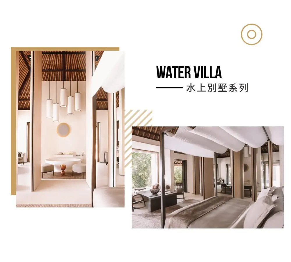 裝潢精緻的空間連接著綠意盎然、棕櫚樹搖曳的熱帶花園,打造出白馬「莊園」的氛圍。每間私人別墅裡的區域都以活門設計,都附有12.5公尺寬的私人泳池,並引進豪華遊艇使用的智慧型傢俱系統,透過 iPad 操控,讓您在遠離塵囂的海島仍能擁有奢華的高科技生活樂趣!