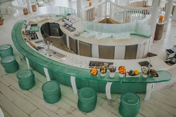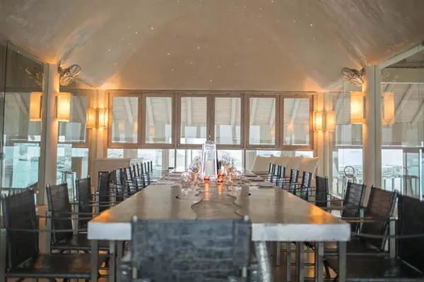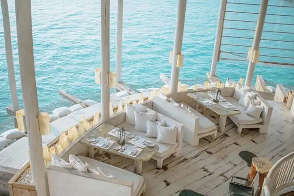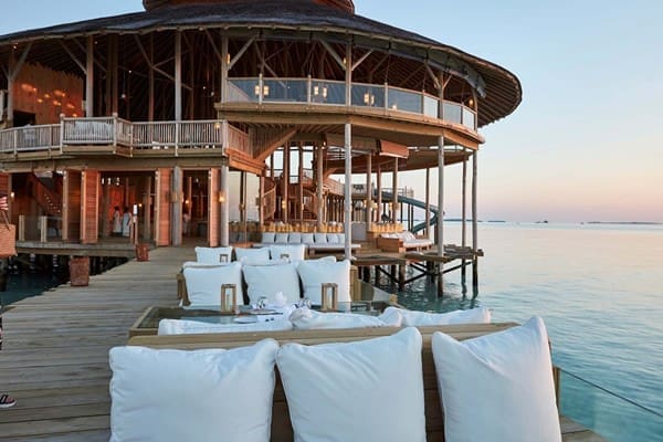 三層樓高的水上建築,為度假村的主餐館並結合商店、酒窖、圖書館等複合式場所,提供全天候的鮮甜蔬果搾汁、放鬆飲品、現場烹調美食、當天捕獲的現烤海鮮,與無死角廣闊海景的相伴,您可以在這耗上一整天都不無趣。
