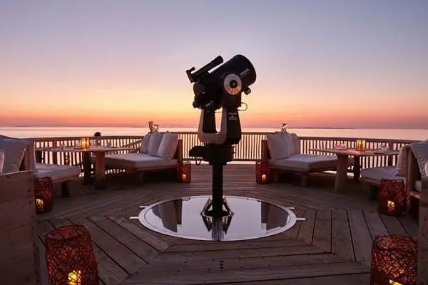 座落在觀星平台,在欣賞繁星的同時,享受極致的就餐體驗。僅有四張餐桌,設有專業配備連接到天文望遠鏡的螢幕,讓來此刻用餐的賓客,可以近距離觀賞天體的奧妙,並聆聽駐島天文學家訴說星空無邊無際的有趣故事。