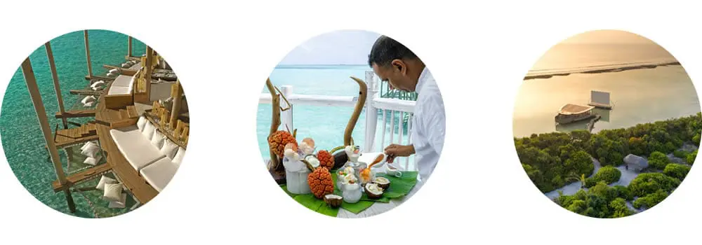 擁有專屬有機菜園,種植有機蔬果,提供廚師們每日新鮮的食材,堅持給賓客鮮美的餐飲品質。以環保為首,採高品質可持續性建材打造,整體設計融入自然,在印度洋海水與軟白沙灘間構成迷人的風景畫,贏得世界讚嘆。