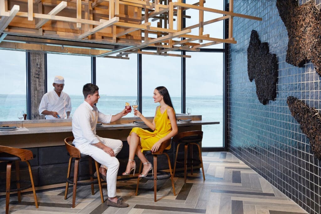 位於潟湖與拖尾沙灘的交界處,在浪漫的水上餐廳體驗高級日料。主廚以過人廚藝與獨到創意,融合日法料理精髓,打造出一道道讓人驚艷的佳餚。限定的鐵板燒烹飪及表演,為貴賓帶來視覺與味覺的雙重饗宴。