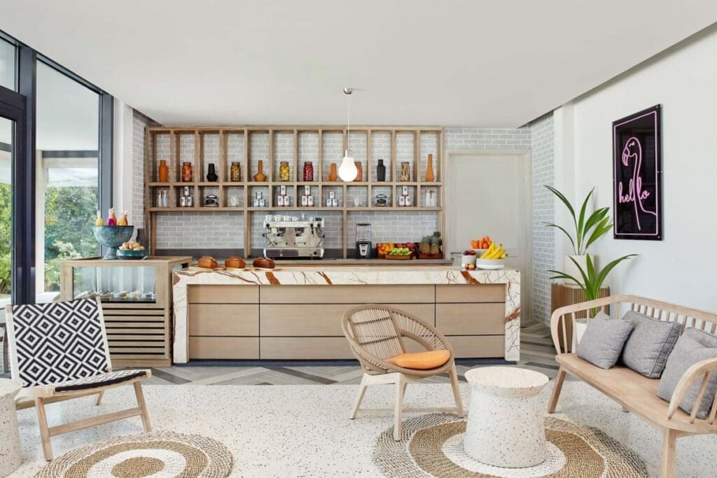 作為渡假村的社交中心, Latitude白天供應著令人耳目一新的illy咖啡與小吃,傍晚時分,也能來此享用一杯餐前酒,為美好晚餐開啟序曲