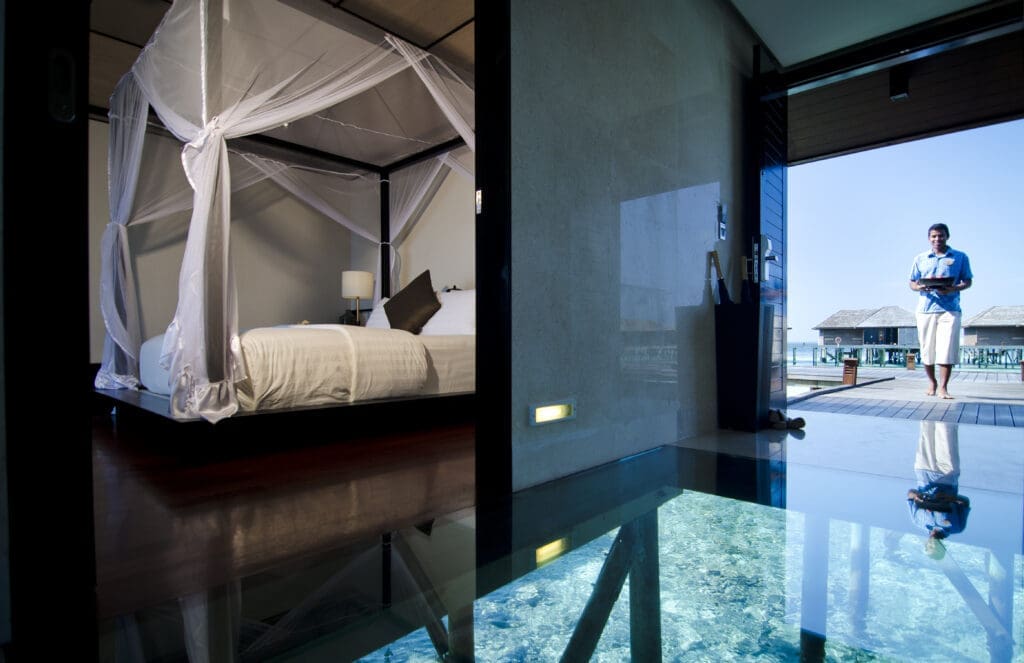 度假村內共有120間別墅,9種房型滿足不同旅行的貴賓。沙灘別墅被翠綠所環抱著,擁有現代清新設計與豪華設施;踏進水上別墅,即可見巨大玻璃地板,將海底美景盡收眼底,另也有親子共遊首選的家庭別墅。