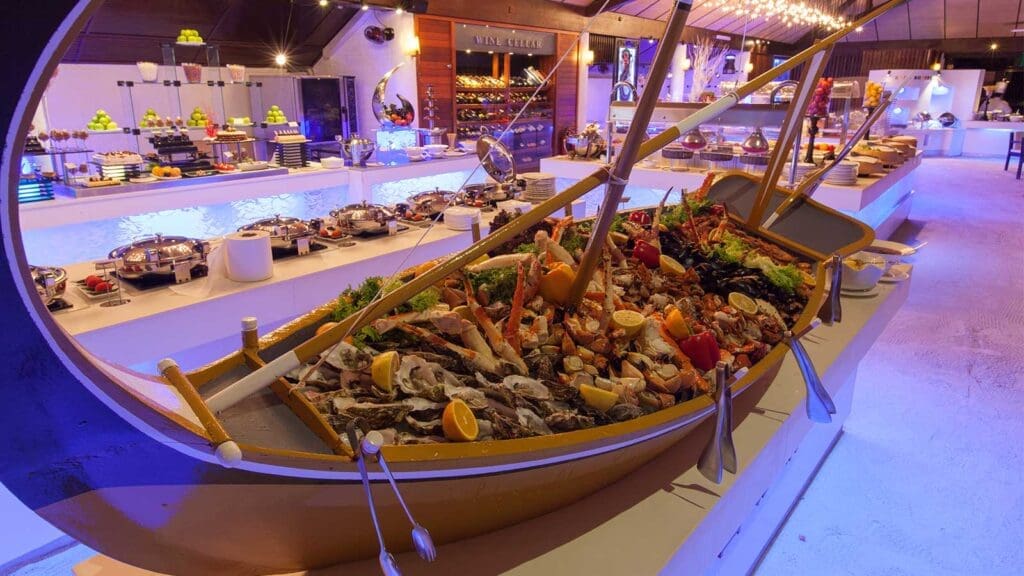 每天都能享受不一樣的主題之夜,主廚帶著貴賓嚐遍世界各地,將馬爾地夫風情展露無遺。更不要錯過獨家精選來自世界各地的80款頂級葡萄酒。