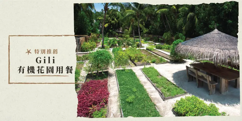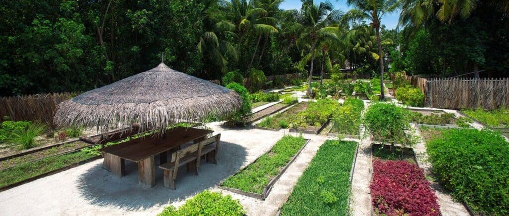 渡假村珍稀的有機蔬果田園,位於島嶼的中心地帶,園內種滿了果樹、新鮮蔬菜和異國草本植物,您也可以選擇在大自然的環繞下享受一餐。