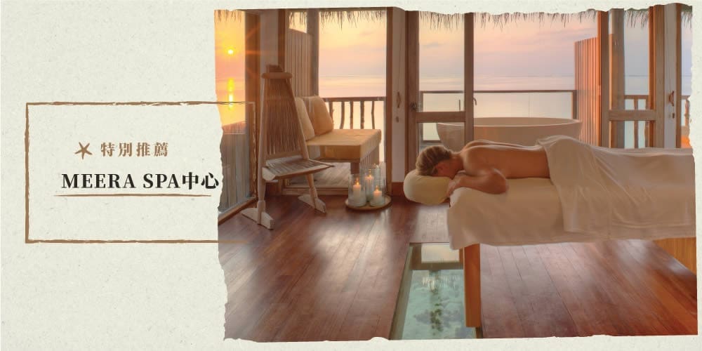 Meera Spa 水療中心地處幽靜的海灣,佇立於風平浪靜的海面之上,是一處彌漫著迷人芳香的避風港。全方位服務的水療中心設有六間水上護理室,鋪設了玻璃鑲嵌地板,其中包括一間阿育吠陀護理亭(Ayurvedic)、蒸汽室、桑拿房以及一個坐擁壯麗美景的露天休閒區。海邊的瑜伽冥想亭距此僅數步之遙,是您迎接日出或欣賞落日的理想之地。