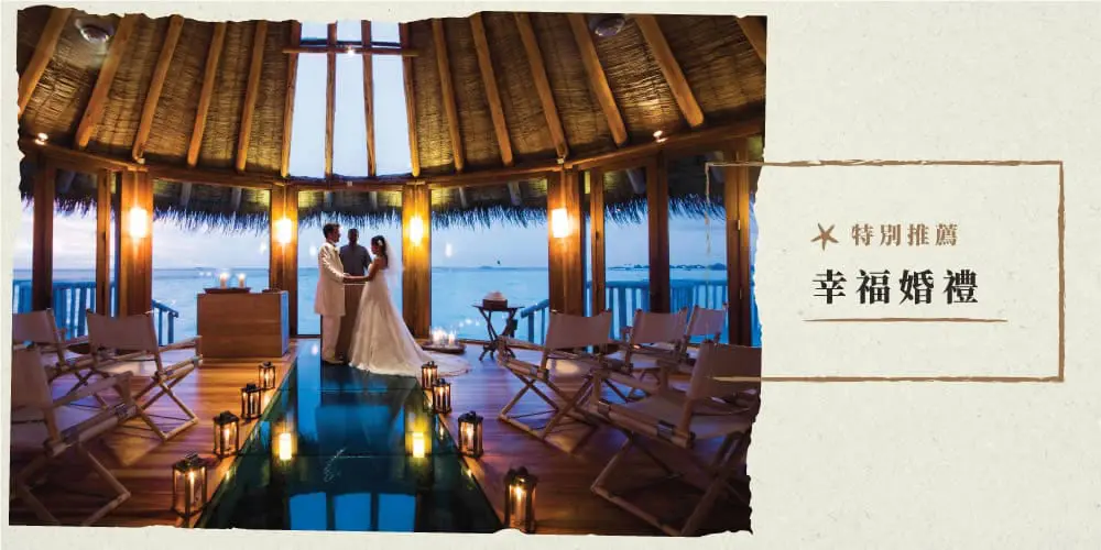 選擇蘭坎福希綺麗度假村,置身於波光粼粼的碧藍潟湖之上,在馬爾代夫當地牧師的祝福下,對愛侶許下一生一世的諾言。