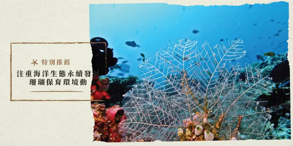 與全球性環境社會認證機構EarthCheck 的合作,作為一家獲得 EARTHCHECK 銀徽認證的度假村,努力向著成為國際最佳環保實踐酒店邁進。為了營造親近原始自然的生活感受,室內使用各類耐用的木材,建築材料均採用環保木材,像是種植的柚木、棕櫚木、竹子和棕櫚葉,其中大部分收穫於島嶼盛產時節,自然的建築搭配傳統的布料裝飾,輕柔溫暖的海風環抱著每一位造訪的遊客,找回慢活人生。