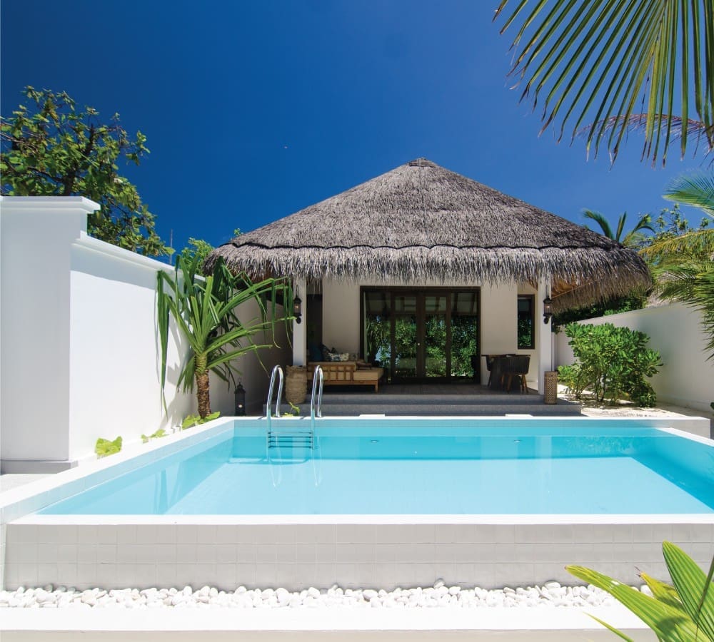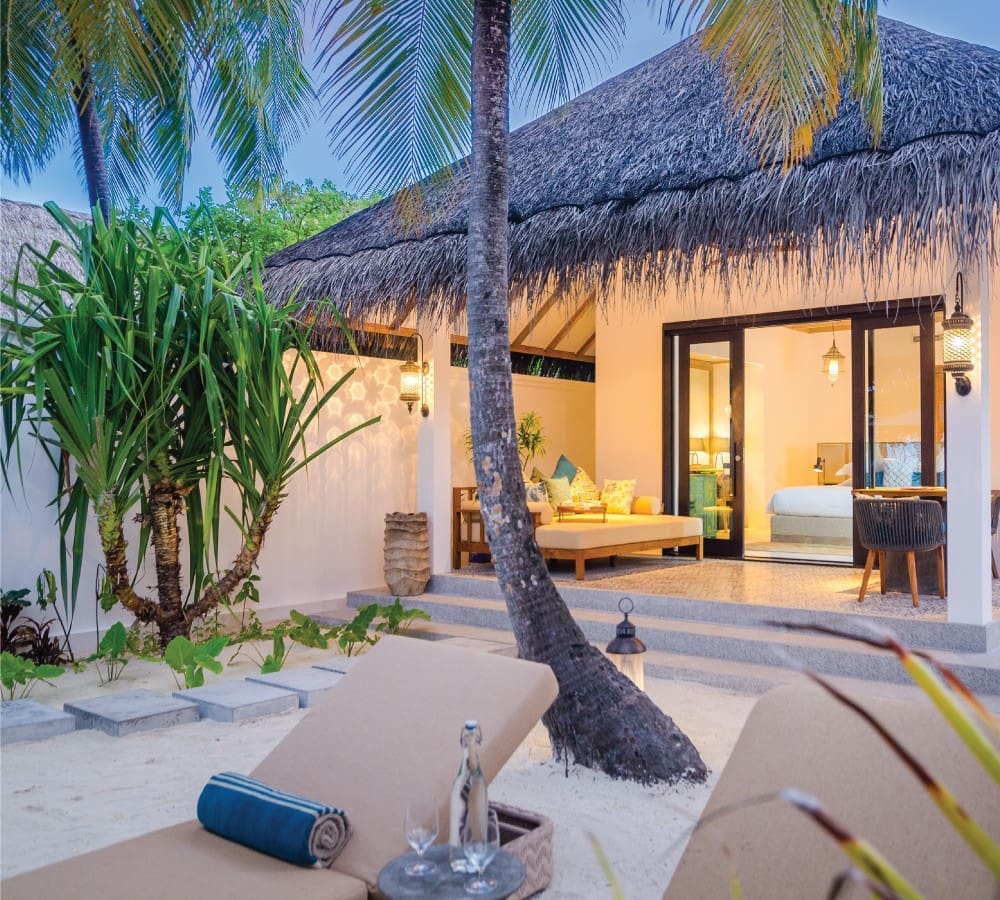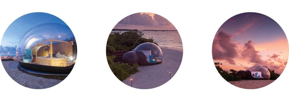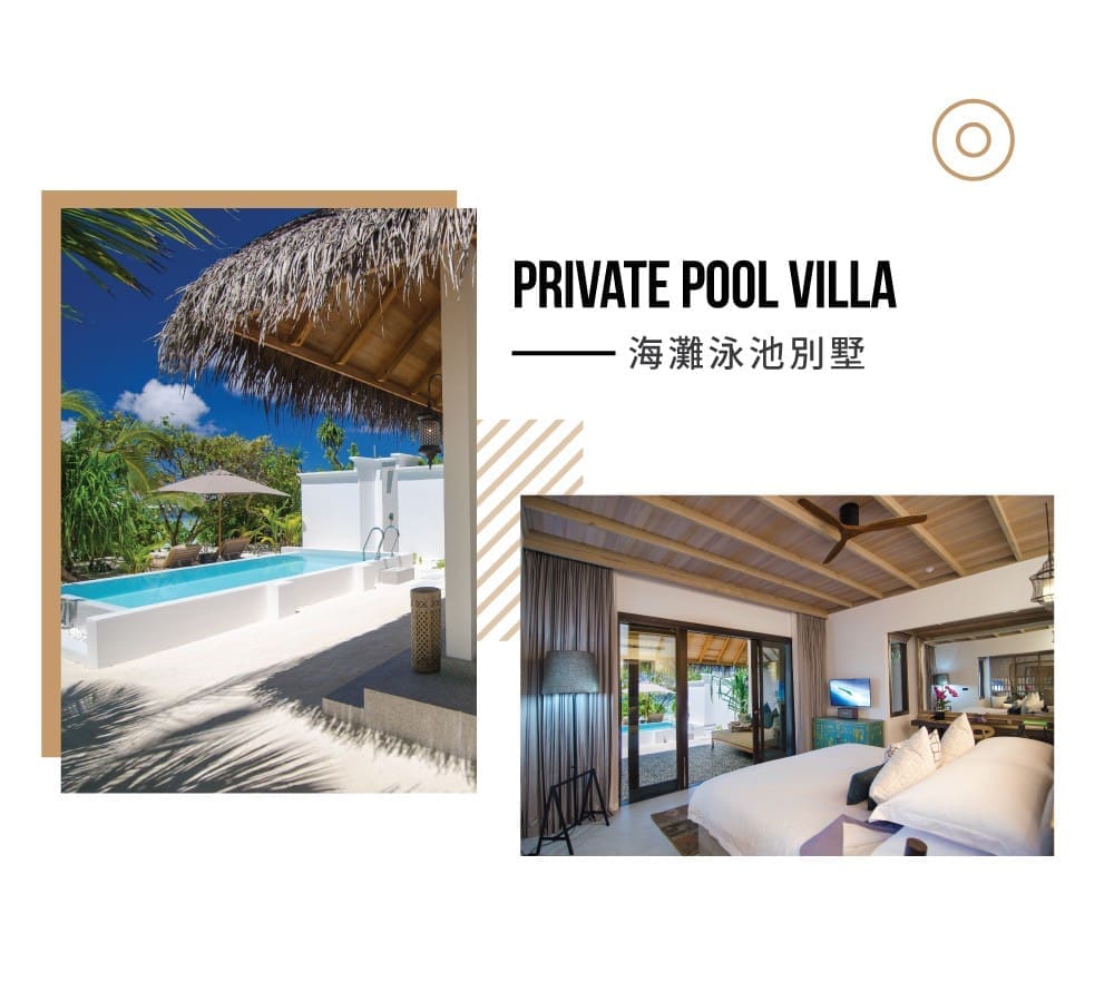 海上、瀉湖、沙灘上共有125間別墅,風格設計以復古風格搭配波希米亞,精緻兼具復古的風格,讓整體充滿輕鬆地渡假氛圍,除此之外,還可體驗最新推出的「沙灘泡泡屋Beach Bubble House」,是馬爾地夫首創的全新體驗,舒適的內裝、訂製木質地板和傢俱、獨立隱密的衛浴,還有「全透明」的泡泡帳篷讓你更貼近四周的大自然美景,抬頭可見滿天星斗,遠離塵囂,好好享受整個印度洋的寧靜。