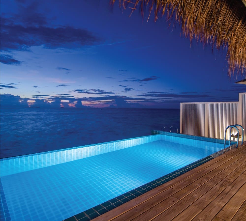 池邊不斷傳來悠閒的音樂,隨著日暮傍晚時分,轉變著音樂的調性、燈光色調,讓您任何時刻都可以體驗這裡完美的渡假氣氛,這裡有著世界級調酒師,在您欣賞輝煌日落時,滿足您的微醺。