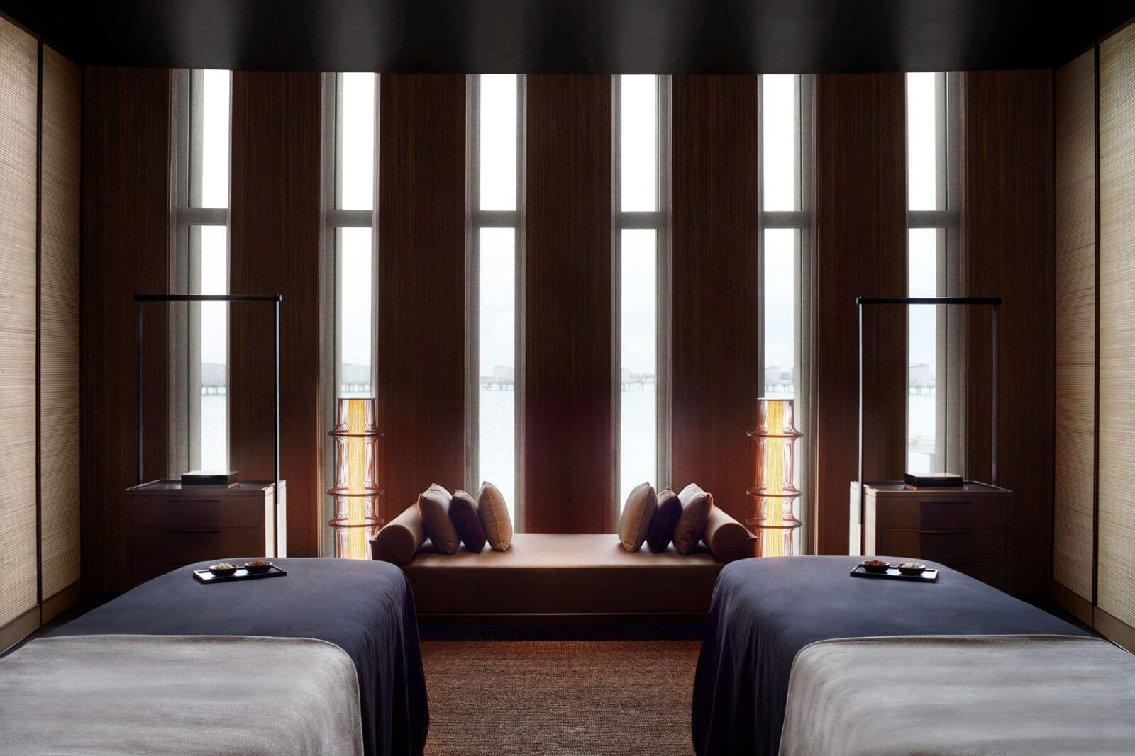 作為國際萬豪集團旗下的奢華品牌,麗池卡頓秉持提供高端旅遊與高標頂級管家服務。建築空間特邀曾設計日月潭涵碧樓、以及安縵Aman酒店集團的國際知名建築大師-Kerry Hill來操刀,採用現代極簡的設計,融入馬爾地夫的自然與人文,打造一座低調奢華的度假酒店。島上共有七家異國餐廳及酒吧,豐富美食滿足各國旅客口味。具有指標性的圓形水上SPA中心,以及充滿未來感空間的兒童俱樂部,多項高品質設施讓海島度假時光更顯豐盈。