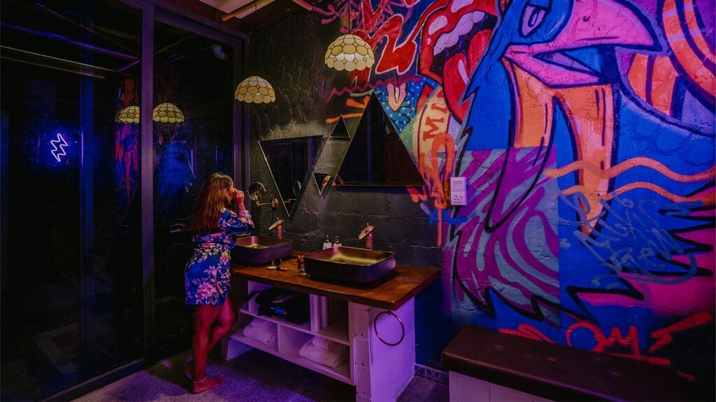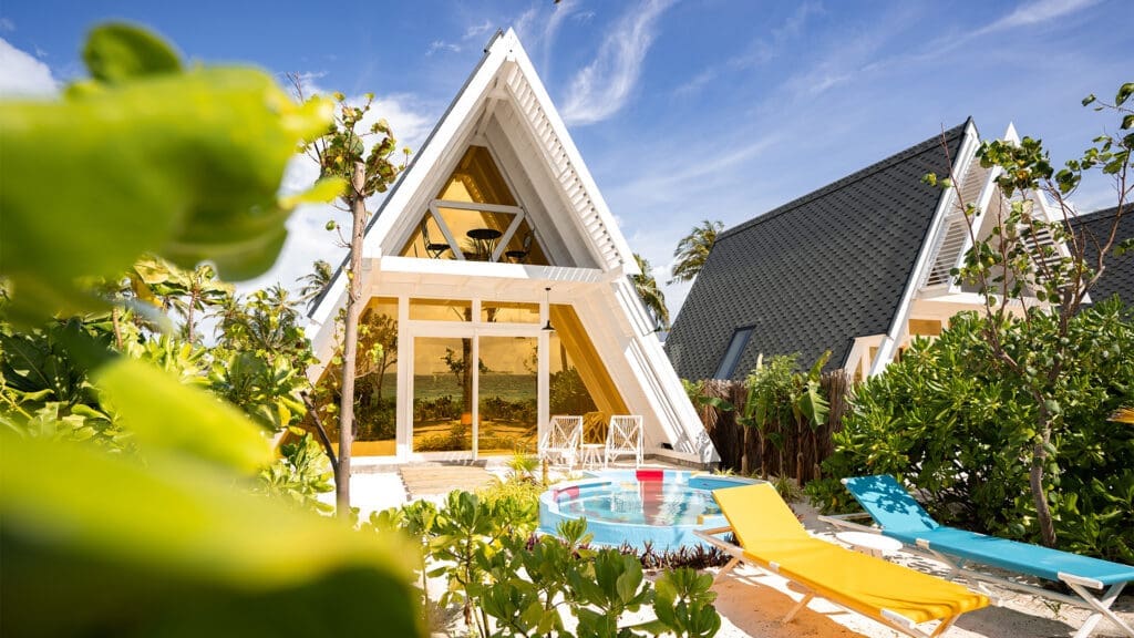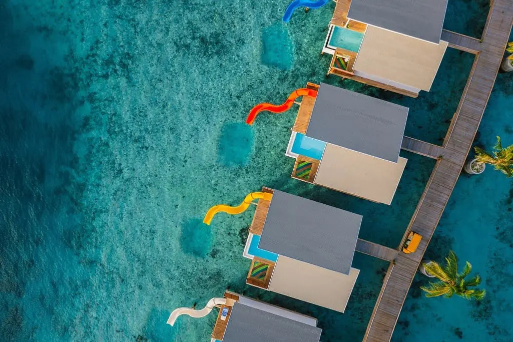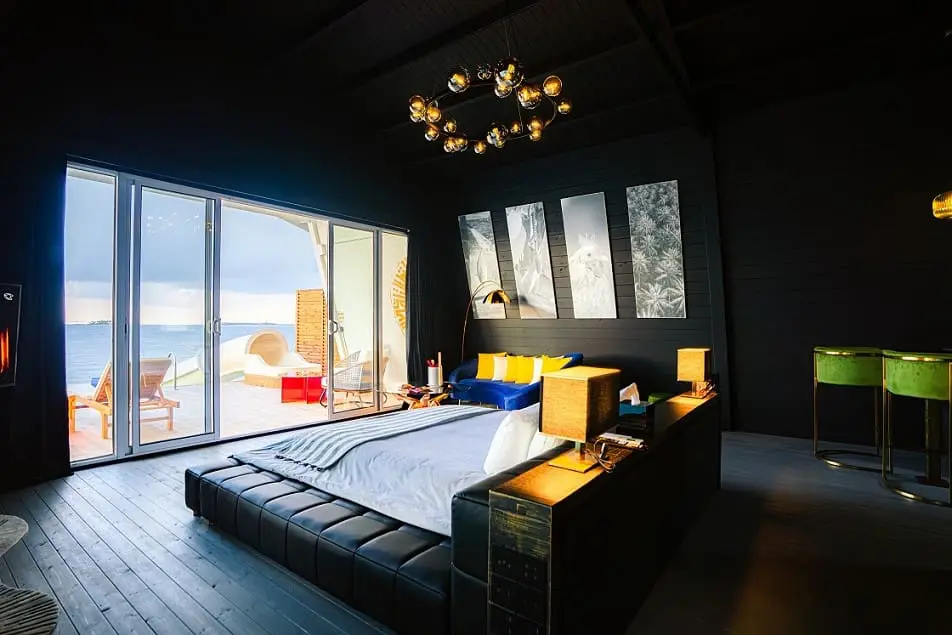 有別於傳統茅草屋,Oaga的別墅充滿著獨特現代風格,別墅內可欣賞到藝術家精心挑選的繪畫、攝影及手工藝術品,還有色彩鮮豔的手工壁畫,住宿空間極具特色。房型種類分別有:與酒吧泳池相連的藝術別墅、繽紛泳池的沙灘別墅、以及擁有滑水道的水上別墅。