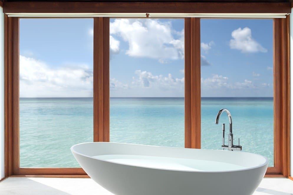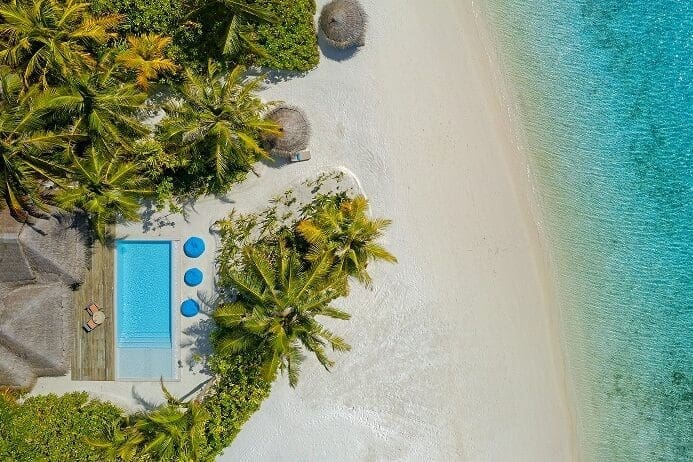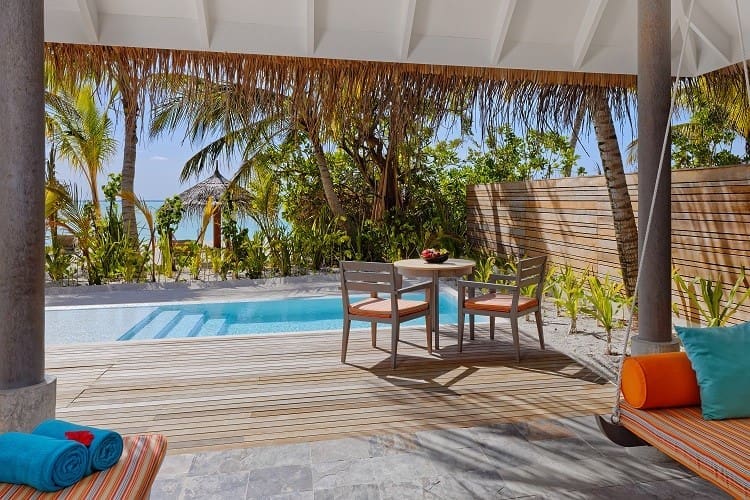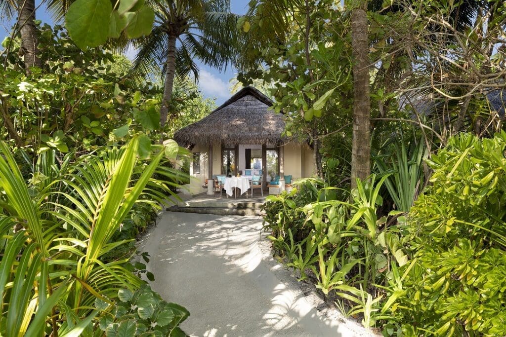島上共有110間私人別墅,結合了泰國與馬爾地夫的風格,巧奪天工的設計,讓建築與自然環境融為一體。別墅外觀以馬爾地夫傳統多尼船為概念,內部空間的質樸風格與暖色光線完美結合,尤其天藍色與綠松石的裝飾與寢具,將馬爾地夫活耀的海洋景觀表現的恰如其分。