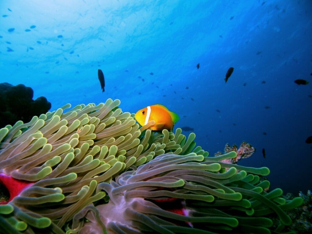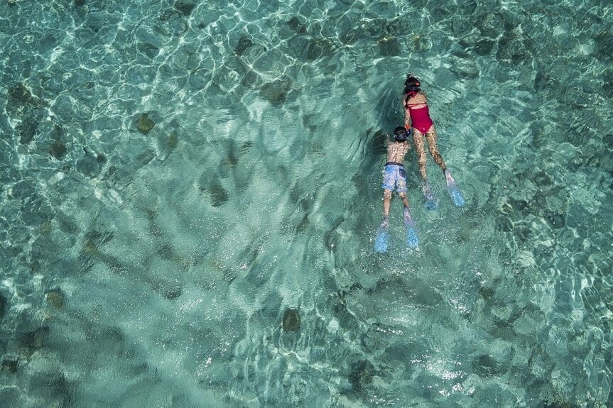 度假村四周環繞著繽紛多彩的珊瑚礁,8-12月在湛藍潟湖裡更有機會與蝠魟一起同樂。另外,笛古島靠近衝浪勝地,適合各路衝浪好手或新手齊聚一堂,享受多樣衝浪樂趣。