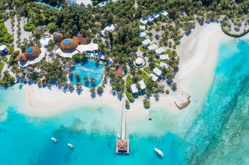 從馬列機場搭乘國內線班機50分鐘,欣賞著碧海藍天與馬爾地夫的珊瑚島鏈,15分鐘的快艇接駁即可抵達這座幽靜的度假島嶼。