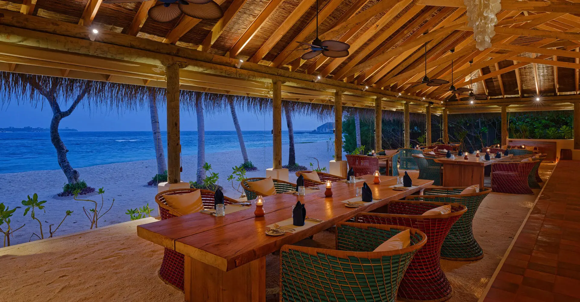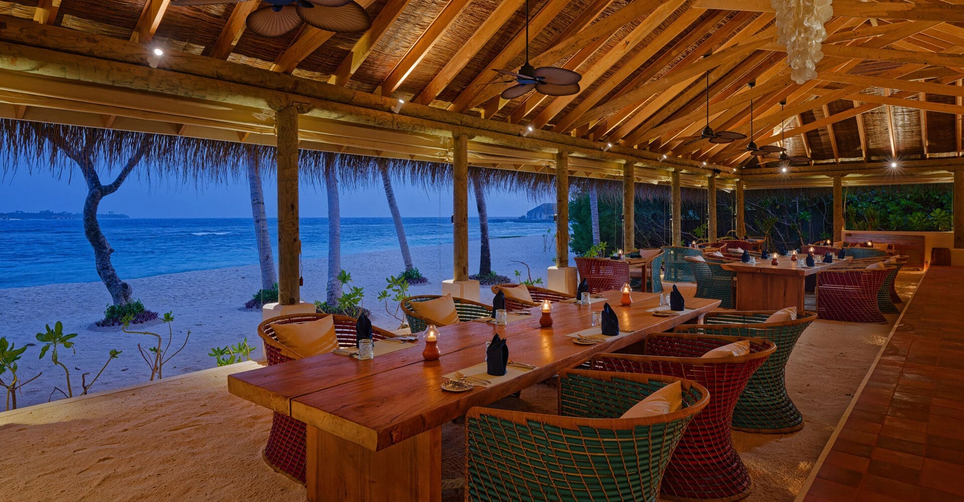 島上全日制餐廳,以自助餐形式呈現世界各國美饌,以及馬爾地夫當地傳統美味。每周五更有印度洋之夜”,盡情享用豐盛的餐點和無限暢飲的雞尾酒。