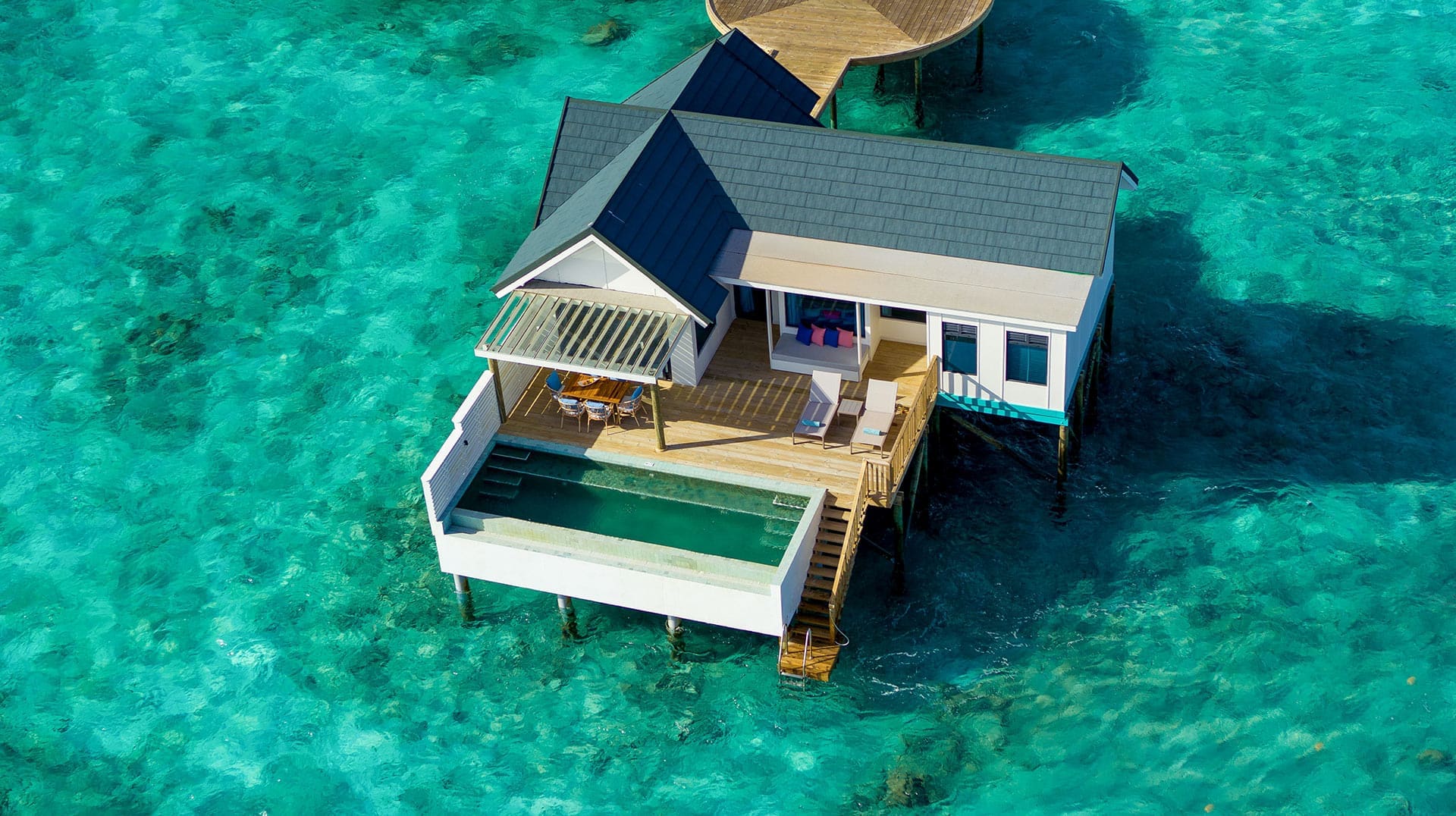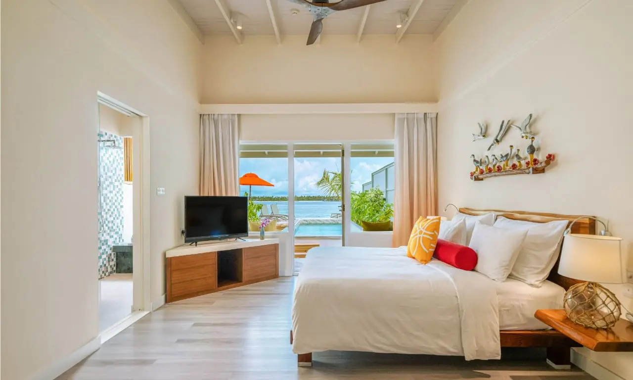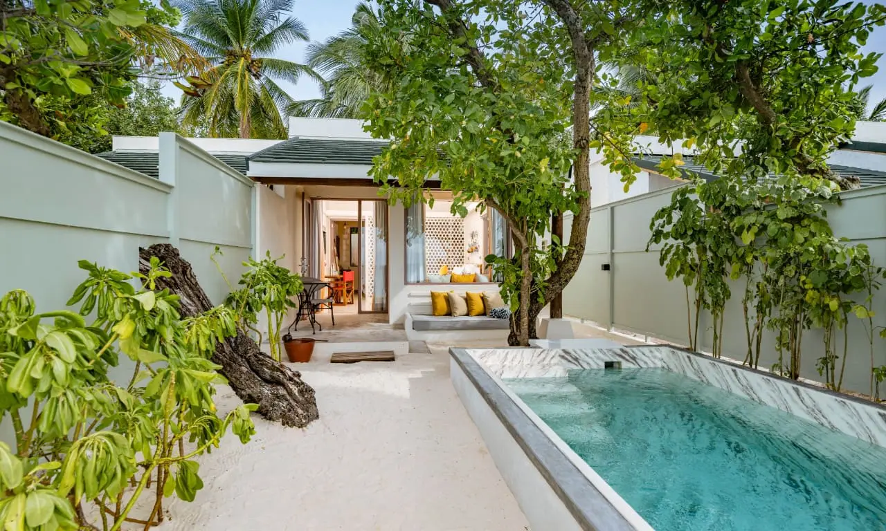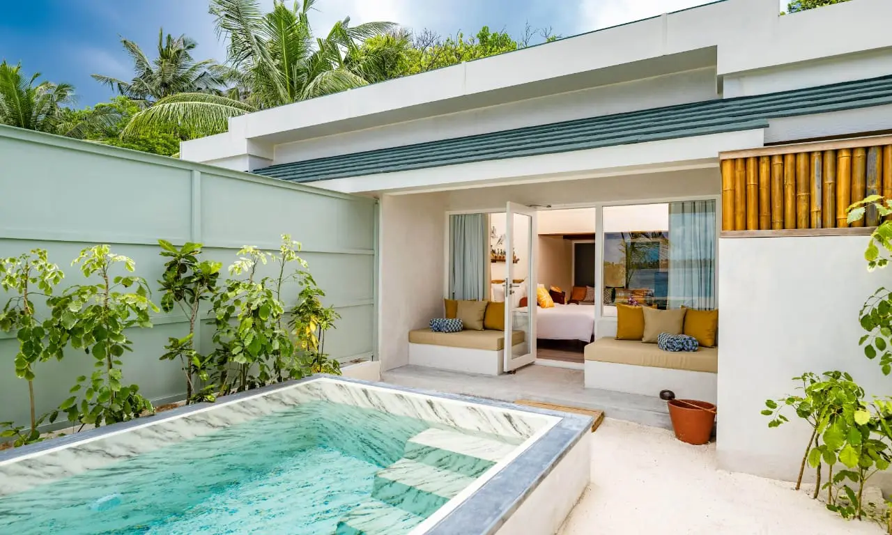 度假村擁有 153 棟風格清新現代的私人別墅,可選擇附設私人泳池的房型。所有海灘別墅皆備有齊全的沙灘用品與便利設施,並配有提供啤酒、軟飲與瓶裝水的迷你吧,貼心又實用。無論蜜月小情侶同遊或家庭出行,這裡都是馬爾地夫最超值又理想的度假選擇之一。