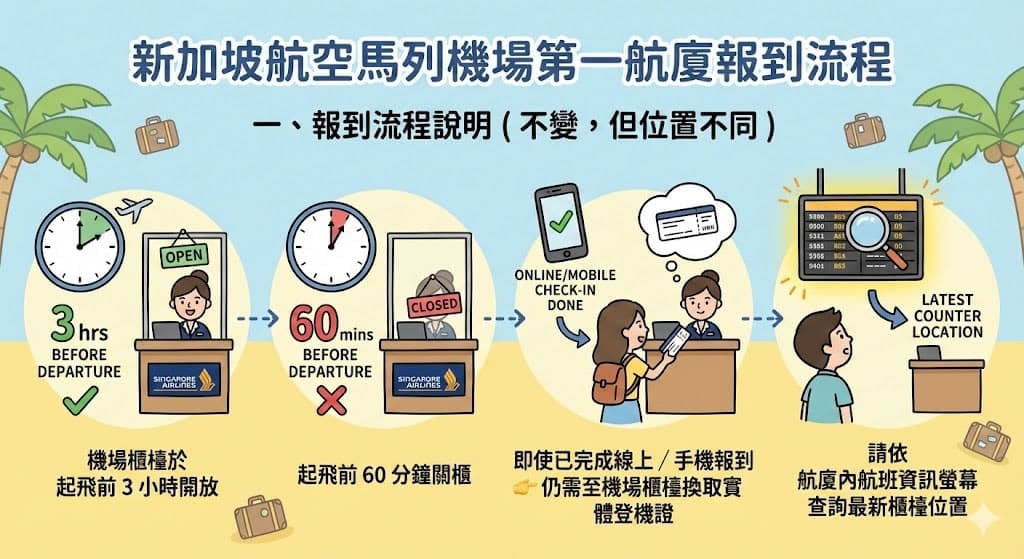 新加坡航空馬列機場第一航廈報到流程