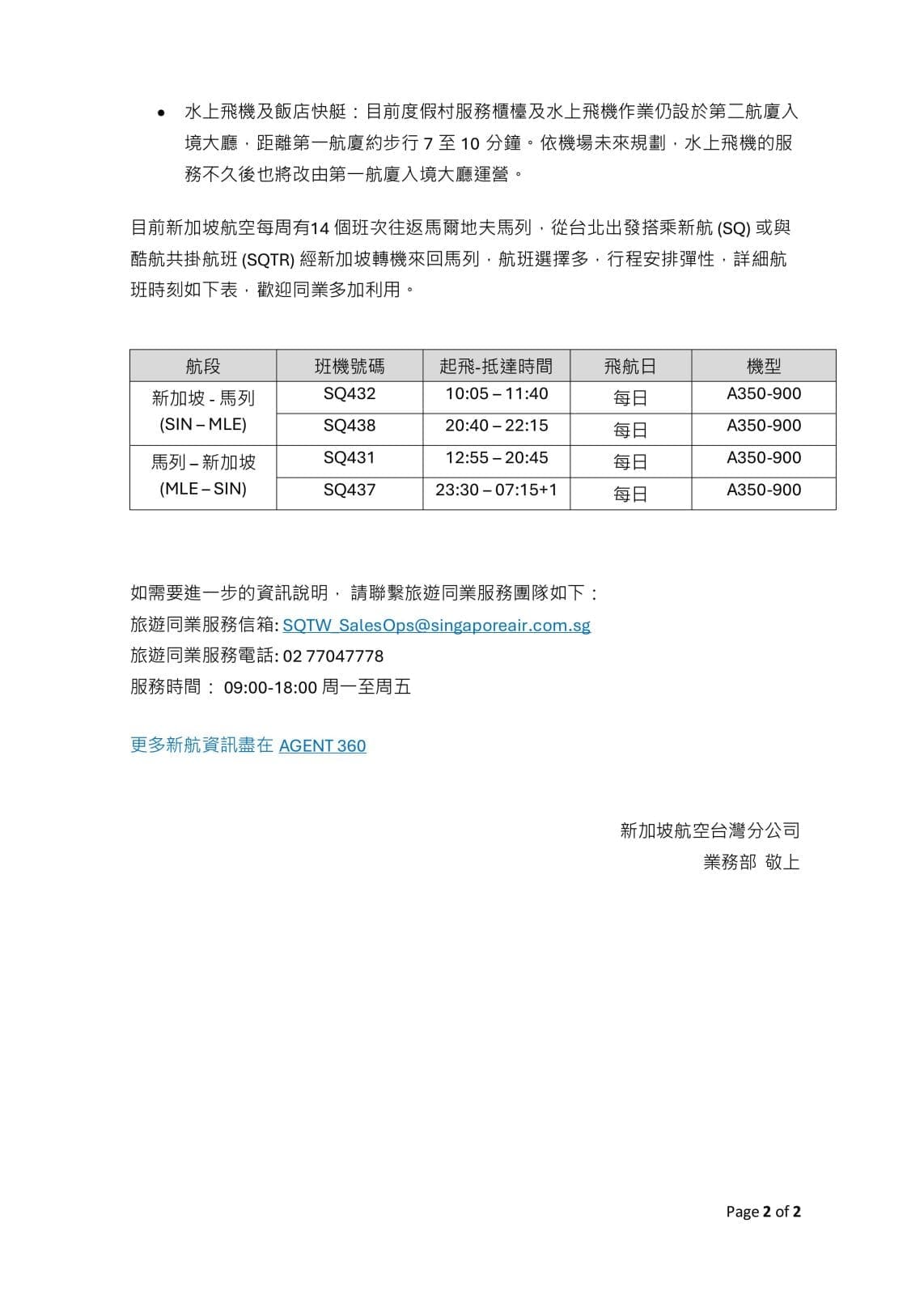| SIN → MLE | SQ432 | 10:05 – 11:40 | 每日 |