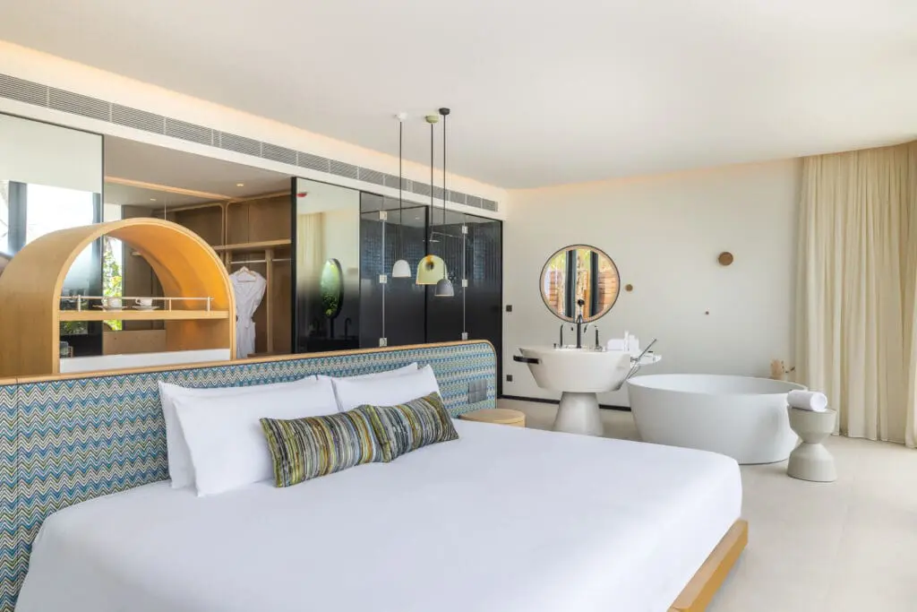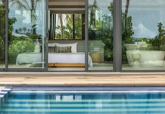 度假村融合現代奢華和獨特的藝術風格,精心打造了80間時尚的沙灘和水上別墅,開放式空間與玻璃幕牆設計,讓海景隨時映入眼簾。每間別墅均配有私人游泳池和陽台,無論選擇哪一種別墅,都將沉浸在如詩如畫之中,距離波光粼粼的印度洋僅有幾步之遙。