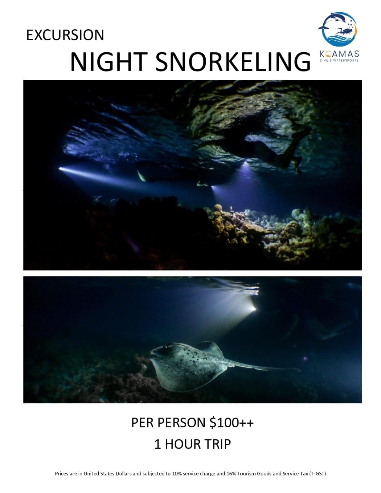 夜間浮潛 | 每人 | $100++ | 1小時行程 |